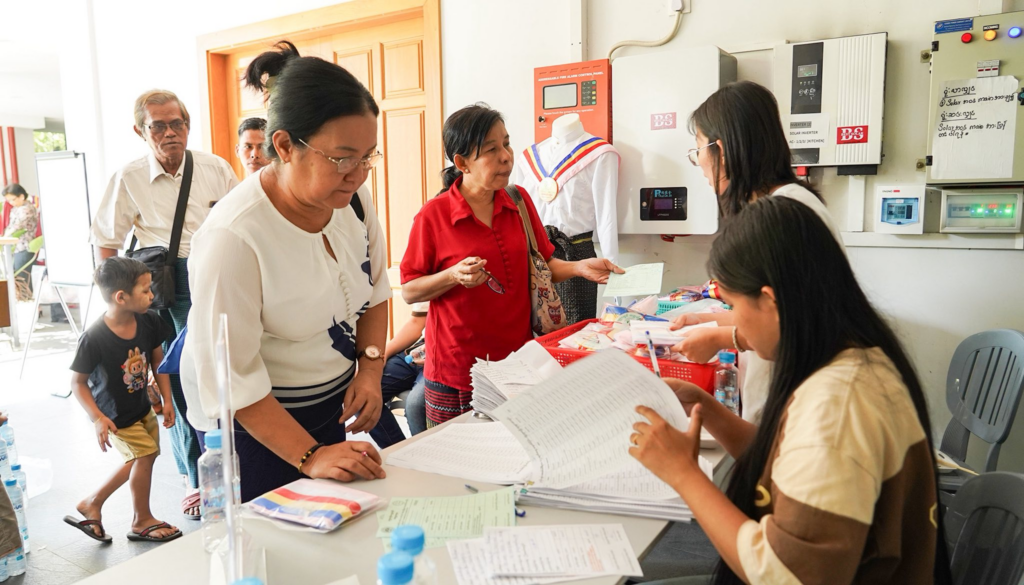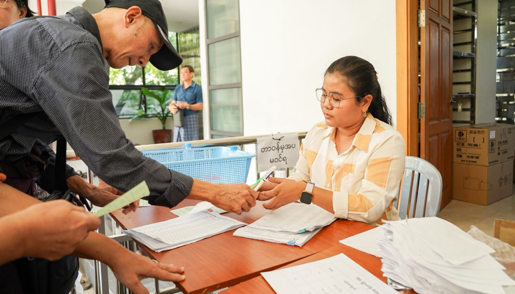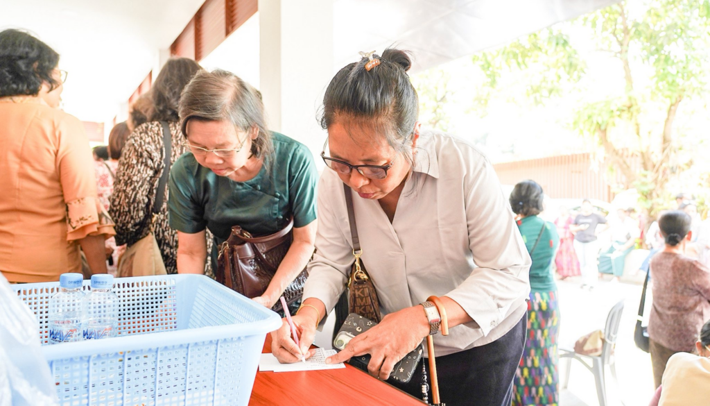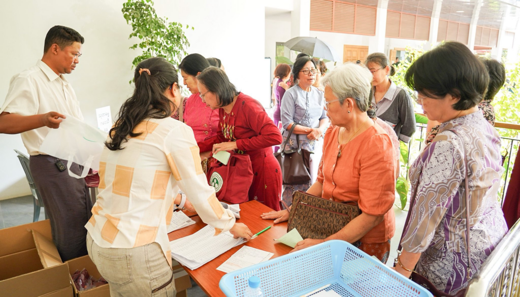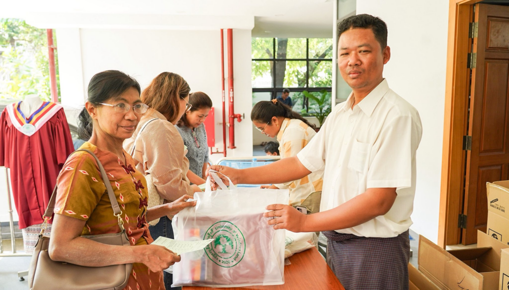 ဒီပလိုမာ အတွက် စလွယ်နှင့် သုတဓမ္မဂဝေသီ အတွက် ဘွဲ့ ဝတ်စုံ လာရောက်ထုတ်ယူကြရာတွင် တိုးဝှေ့ စောင့်ဆိုင်းစရာ မလိုအောင် မိမိ ဖြေဆိုခဲ့သည့် ခုံနံပါတ်/ မှတ်ပုံတင်နံပါတ် ကို ဖြည့်သွင်း၍ မိနစ် အနည်းငယ် အတွင်းမှာပင် UWL system နှင့်တိုက်ဆိုင်စစ်ဆေး၍ အဆင်သင့် ဖြစ်သည်နှင့် စလွယ်နှင့် ဘွဲ့ ဝတ်စုံ ထုတ်ပေးခြင်း၊ deposit လက်ခံခြင်း၊ အခမ်းအနား နေ့ ဓာတ်ပုံ ရိုက်ကူးရန် စာရင်းပေးခြင်းများကို အစု လိုက် အနုဂ္ဂဟ အဖွဲ့ ဝင်များ Volunteer များ မှ စနစ်တကျဆောင်ရွက်ပေးလျှက်ရှိပါသည်။
