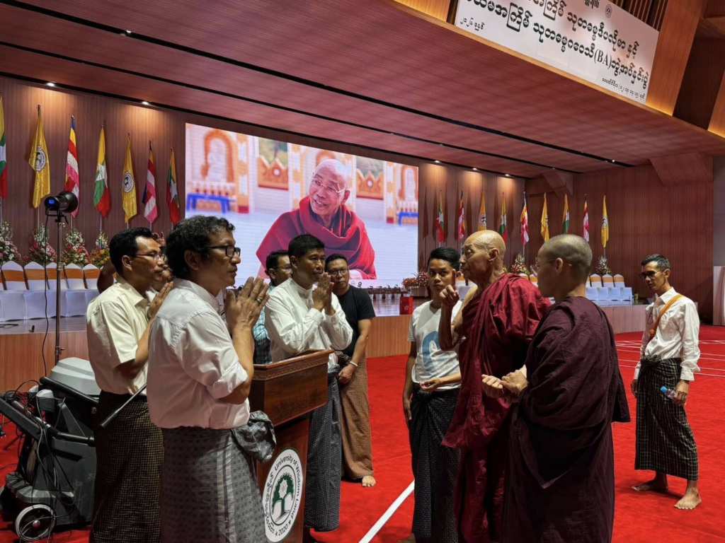 တက္ကသိုလ်အဓိပတိ ဆရာတော်ဘုရားကြီးကိုယ်တော်တိုင် အသေးစိတ် စီမံမှုများပြုလုပ်ပေး လျှက် ရှိနေပြီး အနုဂ္ဂဟ အဖွဲ့ဝင်များ Volunteer များမှ ညခင်း ပိုင်းအထိ ပြောင်းလဲ ပြင်ဆင်ပေးနေသည့် ပညာဘူမိ ဘွဲ့နှင်းသဘင် အခမ်းအနား ပုံရိပ်များ…..မနက်ဖြန် နံနက်ပိုင်း ၁၄/၀၂/၂၀၂၆ မှစတင်ပြီး (၂) ရက်တိုင် ကျင်းပမည့် ပထမ ဦးဆုံး အကြိမ် သုတဓမ္မဂဝေသီ ဘွဲ့ အပ်နှင်းခြင်း အခမ်းအနား အတွက်ပြောင်းလဲ ပြင်ဆင်ထားရှိမည့် အခမ်းအနား ပုံစံ ဓာတ်ပုံများကို ဖေါ်ပြအပ်ပါသည်။ပညာဘူမိတက္ကသိုလ် မှ သုတဓမ္မစာမေးပွဲ BA Part (3) ပြီးစီးသူ ( ၂၁၁၅) ဦး တို့ အတွက် သုတဓမ္မဂဝေသီ ဘွဲ့ ကို တက္ကသိုလ်မှ ပထမဆုံးအကြိမ် အပ်နှင်းမည် ဖြစ်ပါသည်။